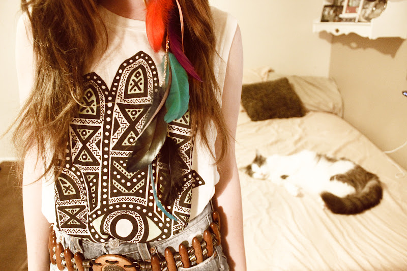 top-UO | shorts-American Vintage | belt-vintage | ring-childhood | rainbow feather earrings-local store